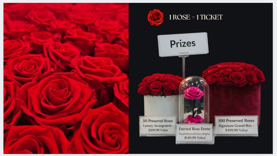 Each rose also serves as an entry into a private luxury raffle, offering guests the chance to win extraordinary floral works of art.
